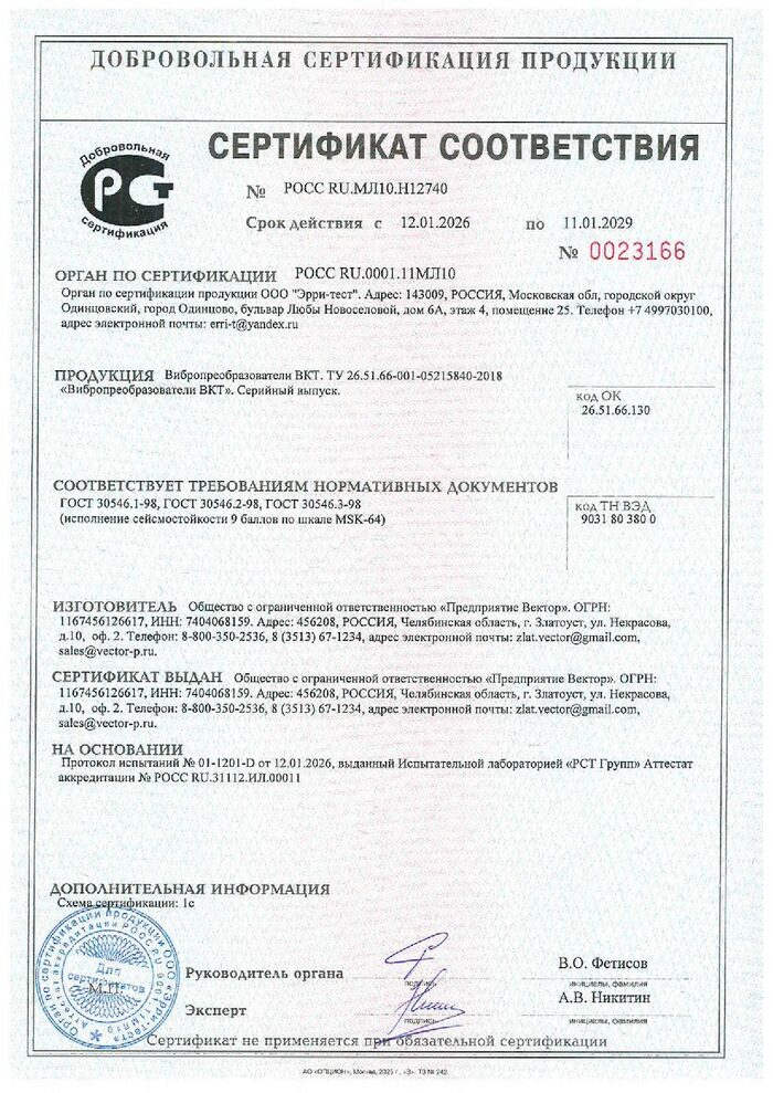 Вибропреобразователь ВКТ-10 предназначен для вибрационного контроля насосов, компрессоров, электродвигателей и другого динамического оборудования